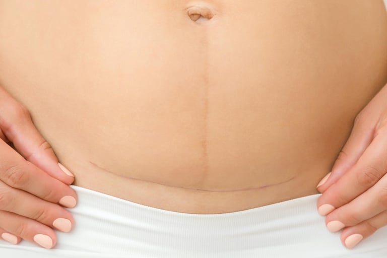 العملية القيصرية هي إجراء جراحي يتم فيه إجراء شق أو قطع في بطن الأم ورحمها لتسليم طفل واحد أو أكثر. قد تكون العملية القيصرية مخططة مسبقاً أو طارئة بناء على حالة الأم والجنين . في هذا المقال، سنتناول بعض الجوانب المتعلقة بالعملية القيصرية، مثل الدلالات والتعافي وأنواع التخدير المستخدمة والتحكم في الألم بعد العملية وشكل الندبة واستخدام تقنيات الخياطة الجمالية لجعل الندبة غير واضحة، وأخيراً الجمع مع شد البطن في نفس الوقت.