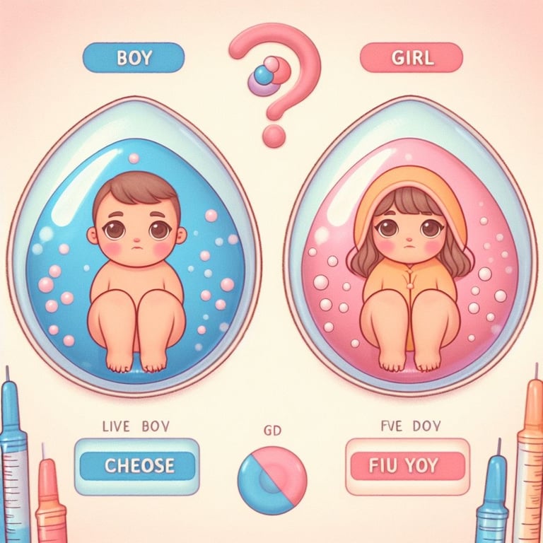 خزعة الجنين: يتم إزالة خلية واحدة أو أكثر من كل جنين لاختبار الكروموسومات X و Y. يمكن لهذا الاختبار تحديد الجنس الجنين السحوب منه الخلية، وفصل الأجنة ذات الكروموسومات X أو Y ونقل الأجنة المرغوبة إلى رحم الأم.