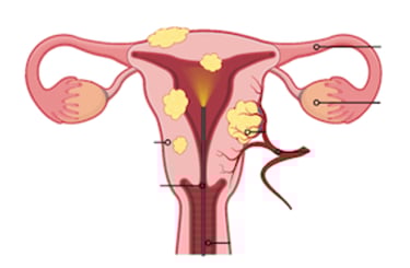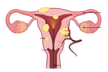 *عدد الأورام الليفية الكثير جدا أو المتوزعة بشكل متفاوت على الرحم.