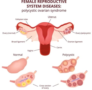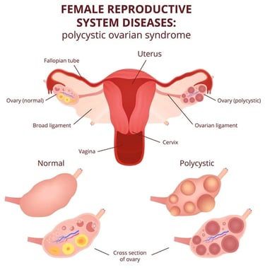 *مقاومة الأنسولين: الأنسولين هو هرمون يساعد الجسم على استخدام السكر كمصدر للطاقة. عندما تصبح الخلايا مقاومة للأنسولين، يرتفع مستوى السكر في الدم، ويزيد إنتاج الأنسولين. وقد يؤدي ذلك إلى زيادة إنتاج الأندروجين، وتأثير سلبي على التبويض والدورة الشهرية. مقاومة الأنسولين ترتبط بعوامل خطر مثل السمنة ونمط الحياة غير الصحي.